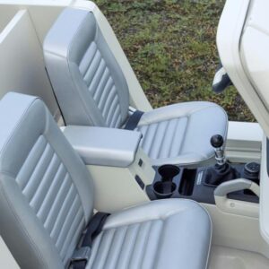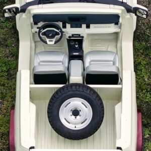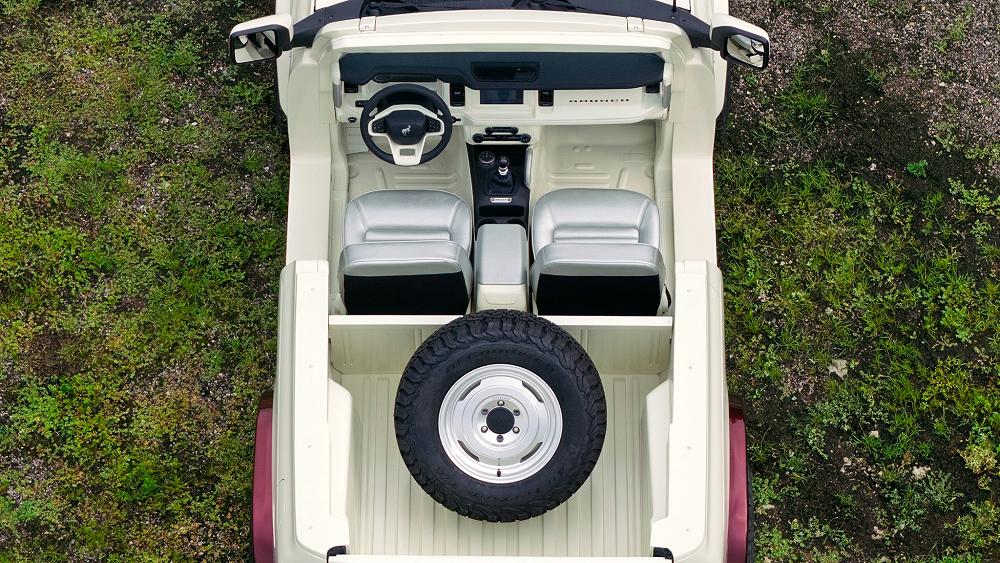 - Simplified interior – pared-back seating, minimal floor treatment, and a utilitarian rear compartment.