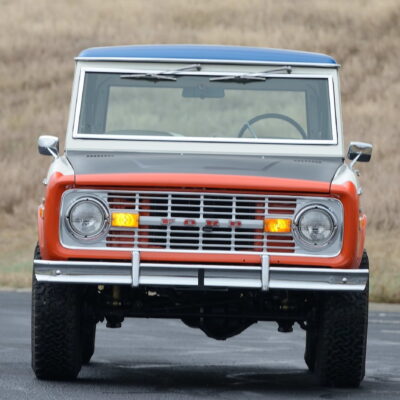 The Baja Broncos all started life as Sport Broncos with special paint by Ford. The paint scheme was as follows: metallic blue on the roof, Wimbledon White from the driprail to the beltline, and Poppy Red from the beltline down. The hood was painted semi-gloss or flat black except for the leading edge of the hood which was painted Poppy Red to match the line where the grill and fenders meet. Additional Ford-supplied equipment consisted of the Extra Cooling Package, reduced sound exhaust, and the heavy duty suspension.