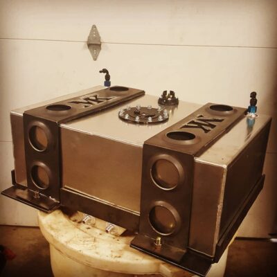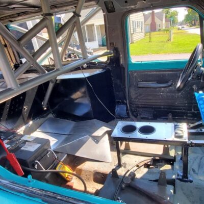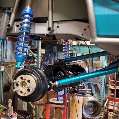 The rear suspension has been replaced with a custom 4-link and King 2.5-inch 14-inch coilovers with Fox bumpstops.