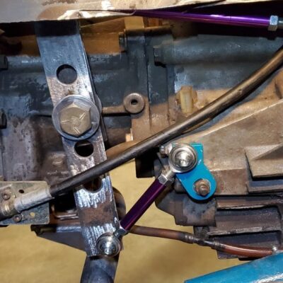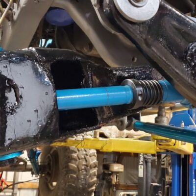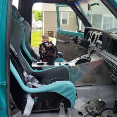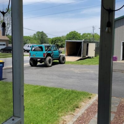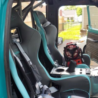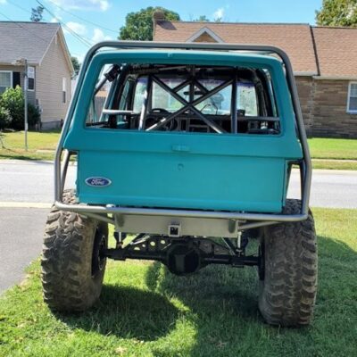 The Bronco II still uses the Ford 2.9L V6 that came in the Bronco II and is backed by a C5 automatic transmission that’s been modified with C4 gears and a reverse manual valve body. Behind the transmission is a BW1350/BW1354 transfer case doubler with twin sticks. The gives the Bronco II the crawl ratio it needs to climb rocks.