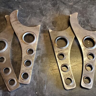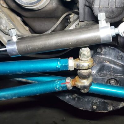 Dana 35 TTB, Trussed, Clearanced for 20″ of travel but limit strapped at 15* camber max., 4.56 Gears, Lockrite Locker, Warn Jeep Hubs, Moog Joints, Stretched 6.5″ forward and each beam is stretched 0.5″ for an additional width of 1″ overall. Ball joints moved out