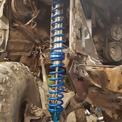 Dugan didn’t just swap the parts from the Ranger onto the Bronco II. He made a lot of upgrades as he went. Below you can see that he designed and built his very own suspension brackets for the front axle