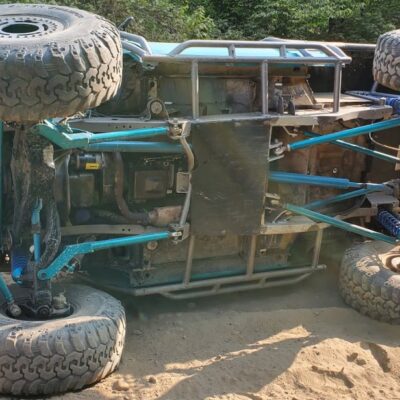 As you walk around to the side it becomes even more confusing. It’s not a Willy’s, it’s not a Jeep, it’s not an International Scout, and it’s not a Ford Bronco. And then it hits you; that’s a Ford Bronco II body. Now you just stand there for a minute taking in what it is you’re seeing. This is a Ford Bronco II with an exo cage and a Willys inspired grill. Oh, and that front axle, it’s not a Dana 44 TTB, it’s a Dana 35 TTB found in the 1990-1997 Ford Ranger and 1991-1994 Ford Explorer.
