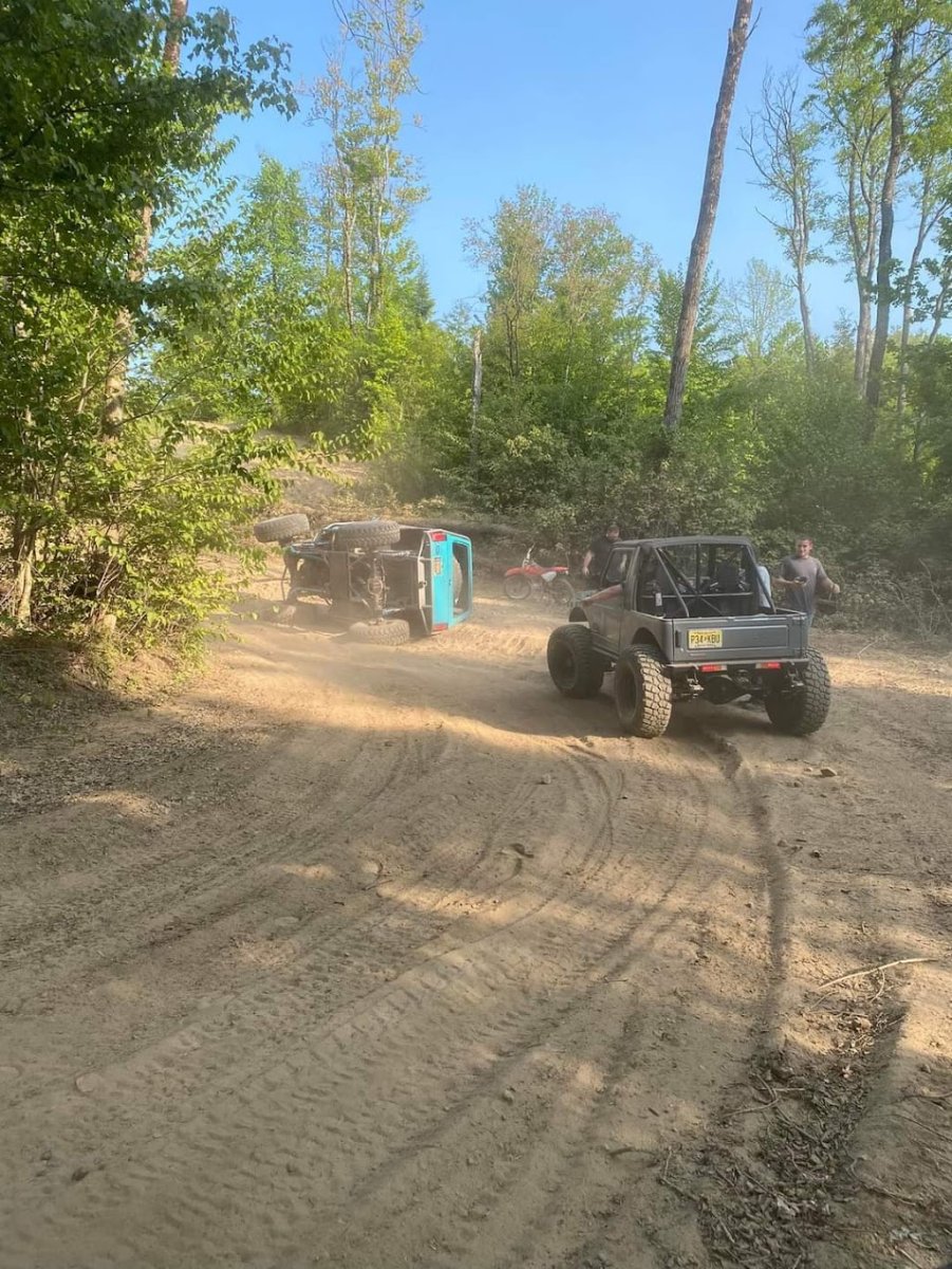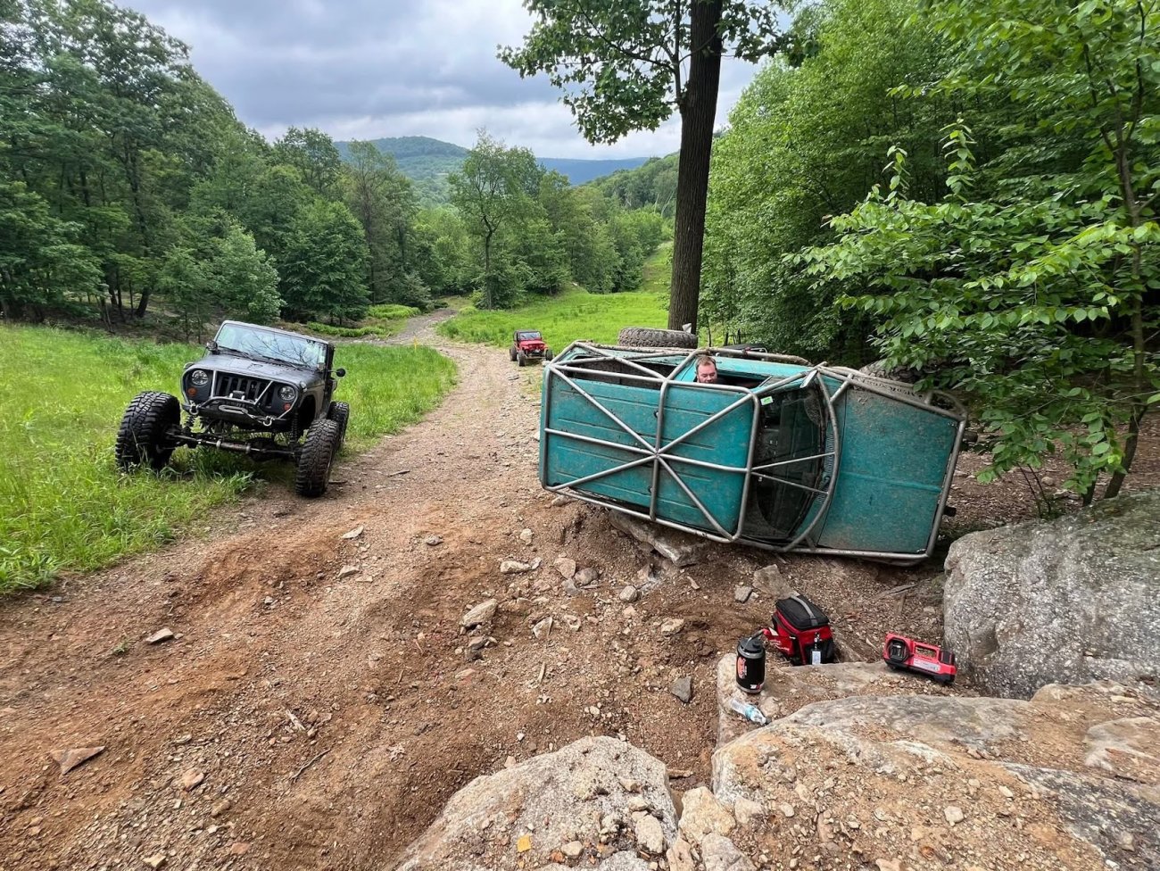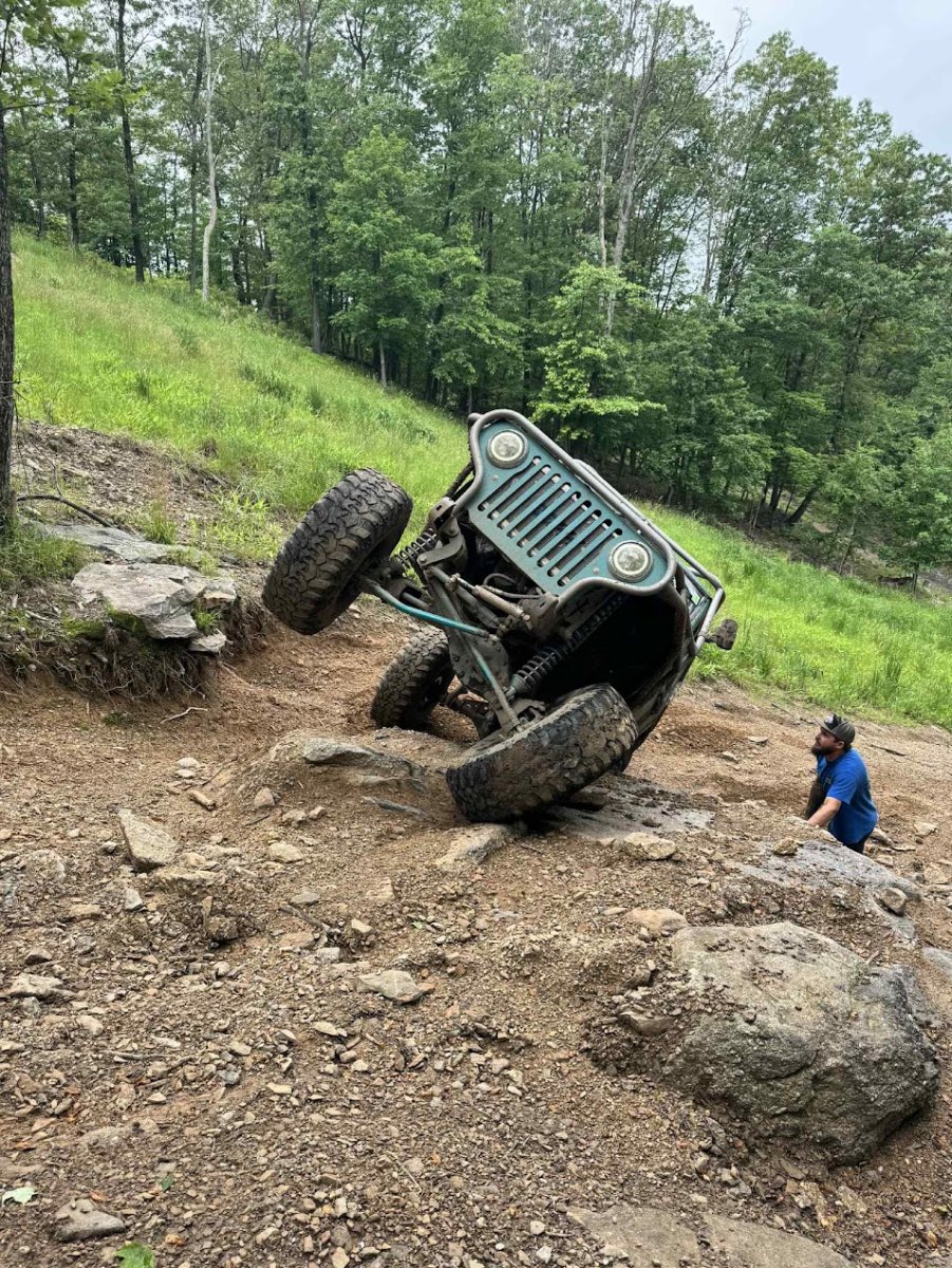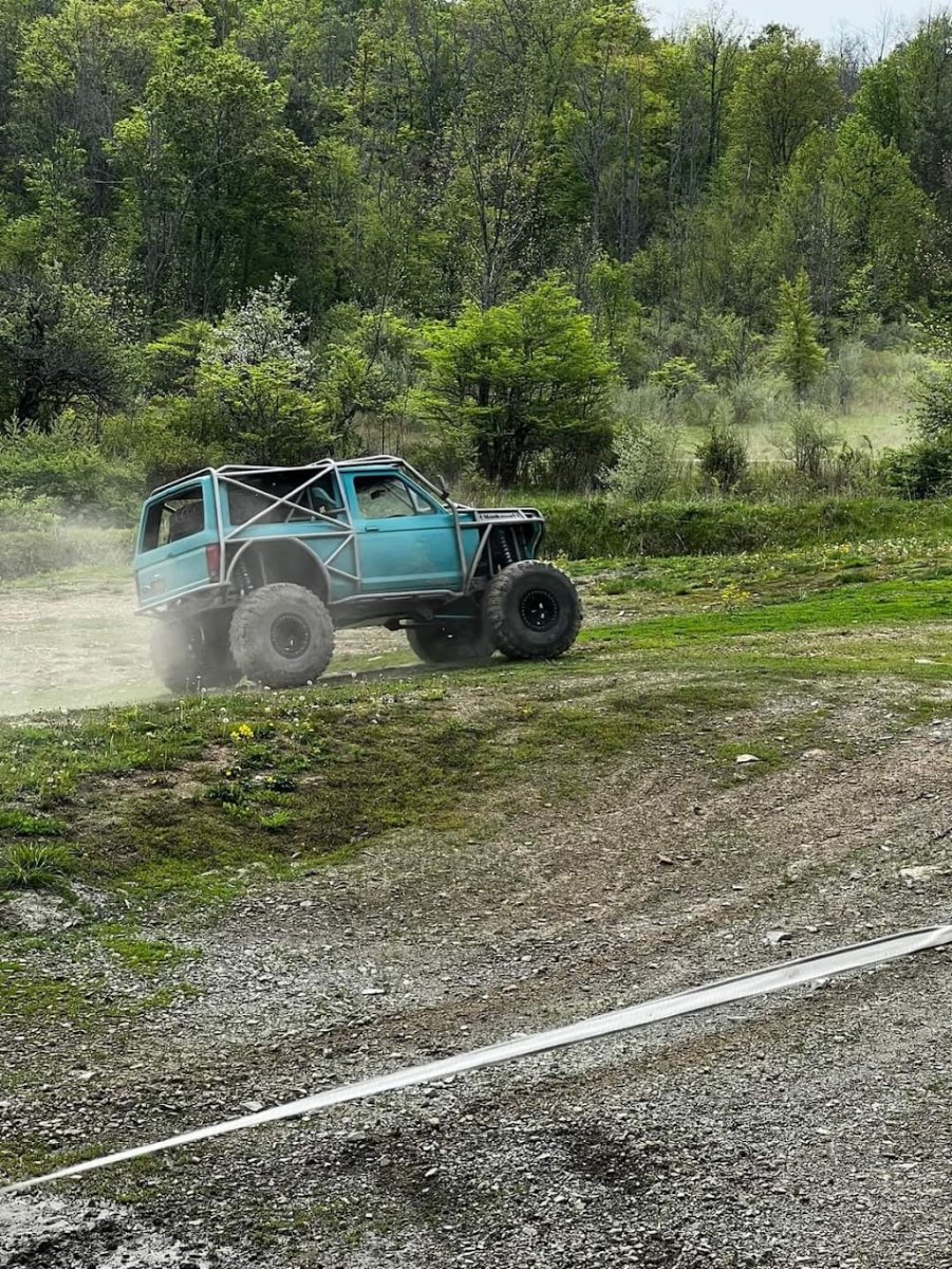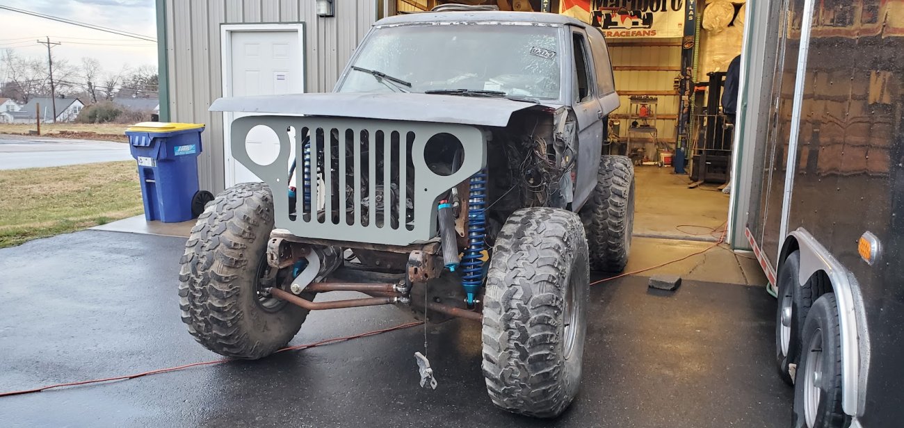 Here’s something you’ve probably never seen before. It looks like some kind of Willys coming towards you, but it’s a little confusing because you’re counting the grill slots, but there aren’t any turn signals under the headlights, or the holes to mount them in. Looking closer it appears to have a Ford TTB front suspension. Is that a Dana 44 TTB? Those look like 39-inch IROKS that you would find on a rock crawler. Why doesn’t this thing have a Dana 60 solid front axle?