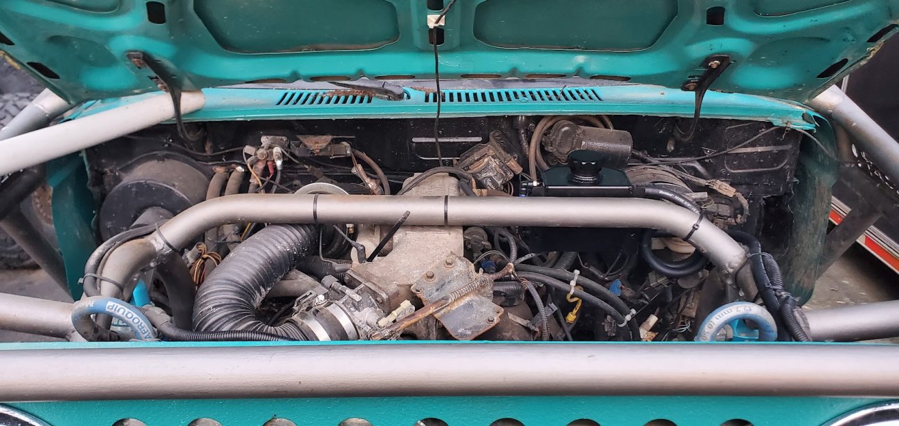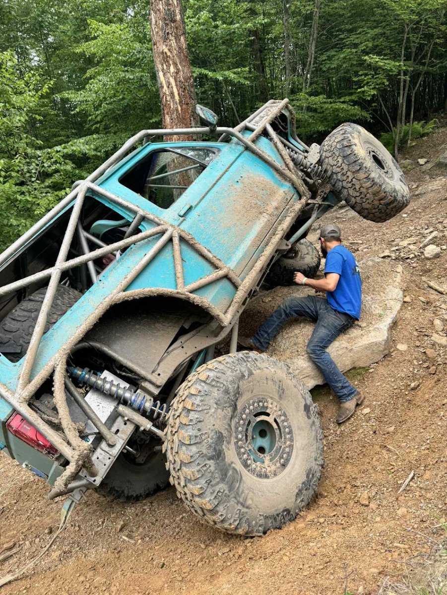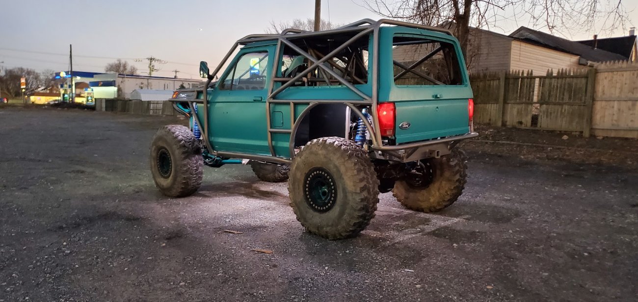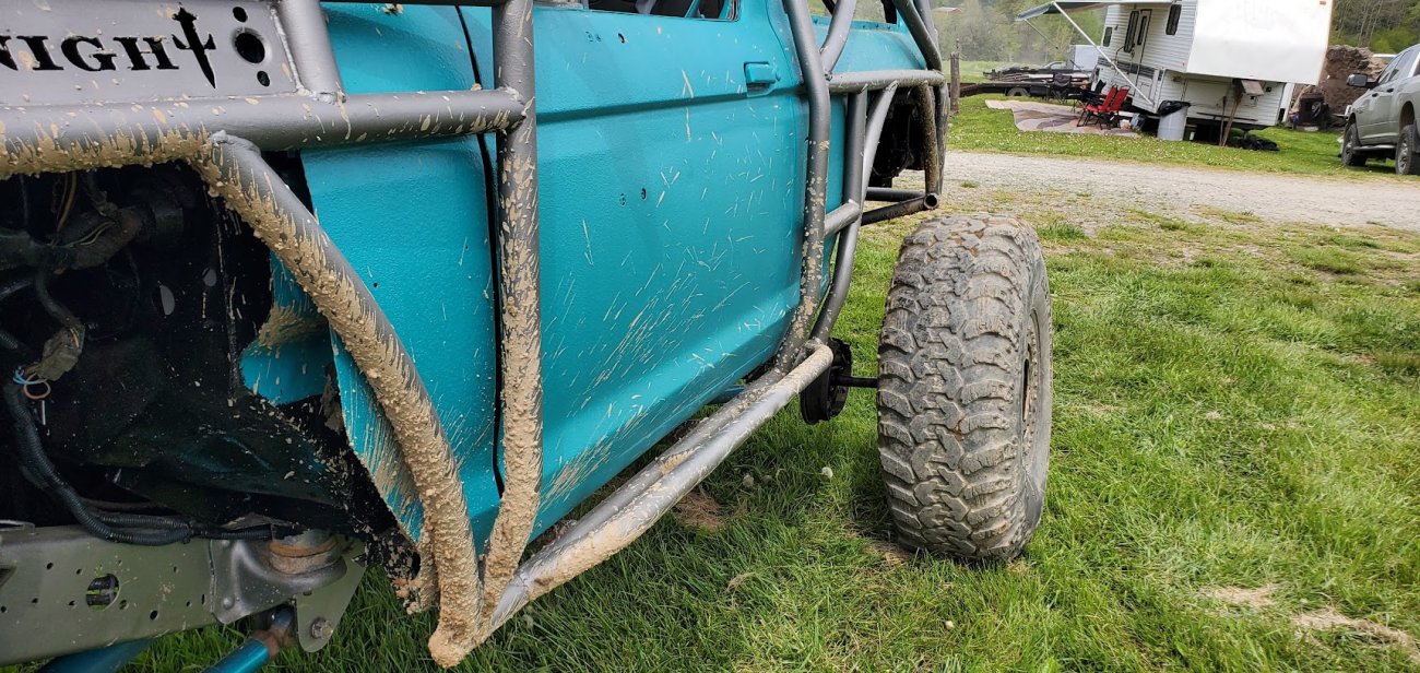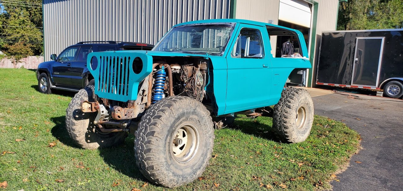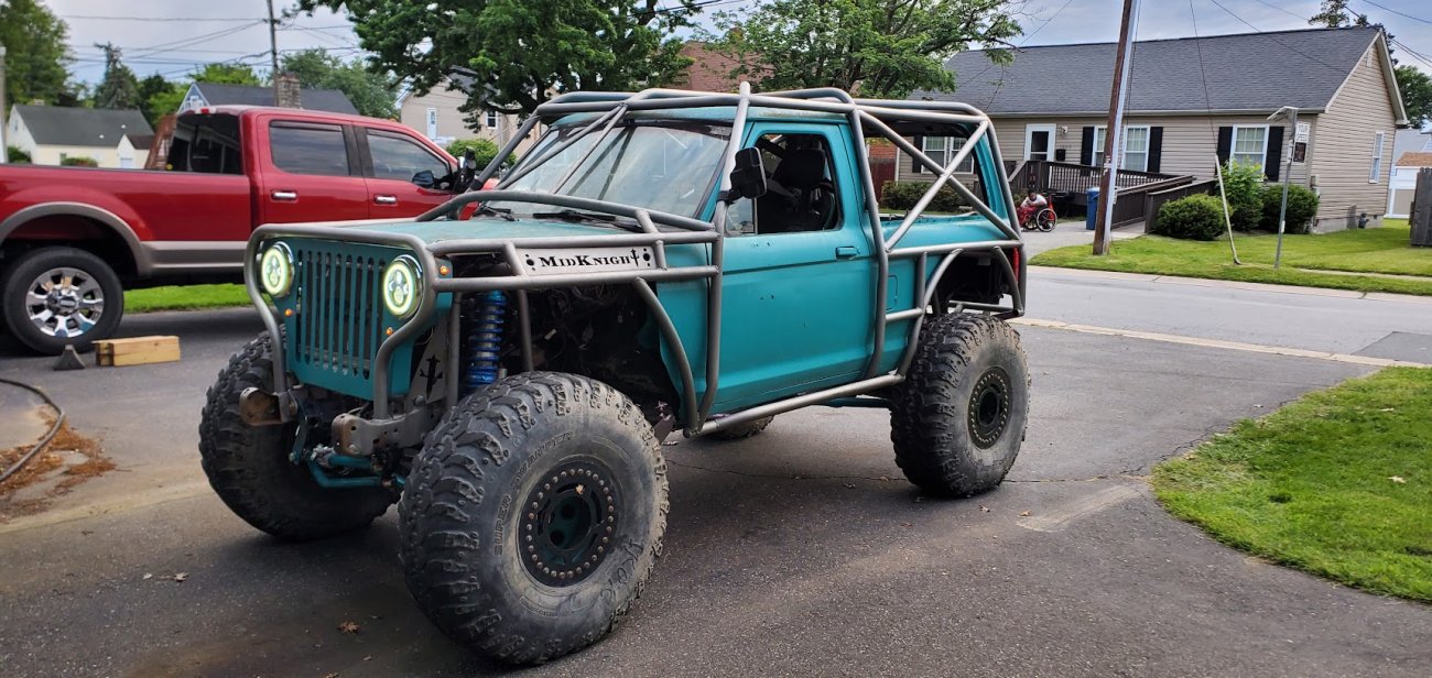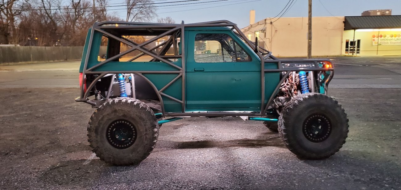 As you walk around to the side it becomes even more confusing. It’s not a Willy’s, it’s not a Jeep, it’s not an International Scout, and it’s not a Ford Bronco. And then it hits you; that’s a Ford Bronco II body. Now you just stand there for a minute taking in what it is you’re seeing. This is a Ford Bronco II with an exo cage and a Willys inspired grill. Oh, and that front axle, it’s not a Dana 44 TTB, it’s a Dana 35 TTB found in the 1990-1997 Ford Ranger and 1991-1994 Ford Explorer.