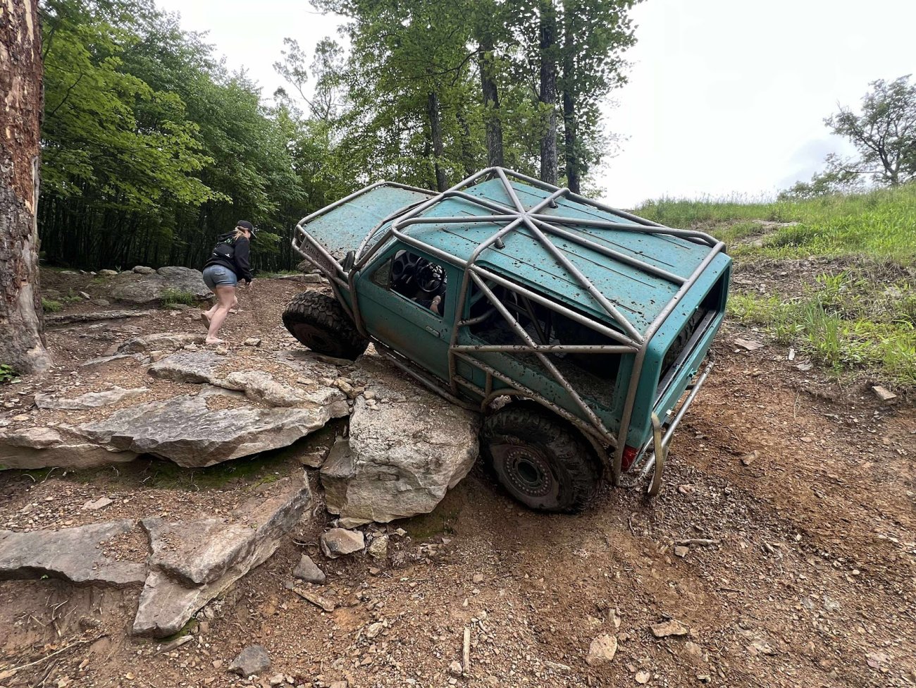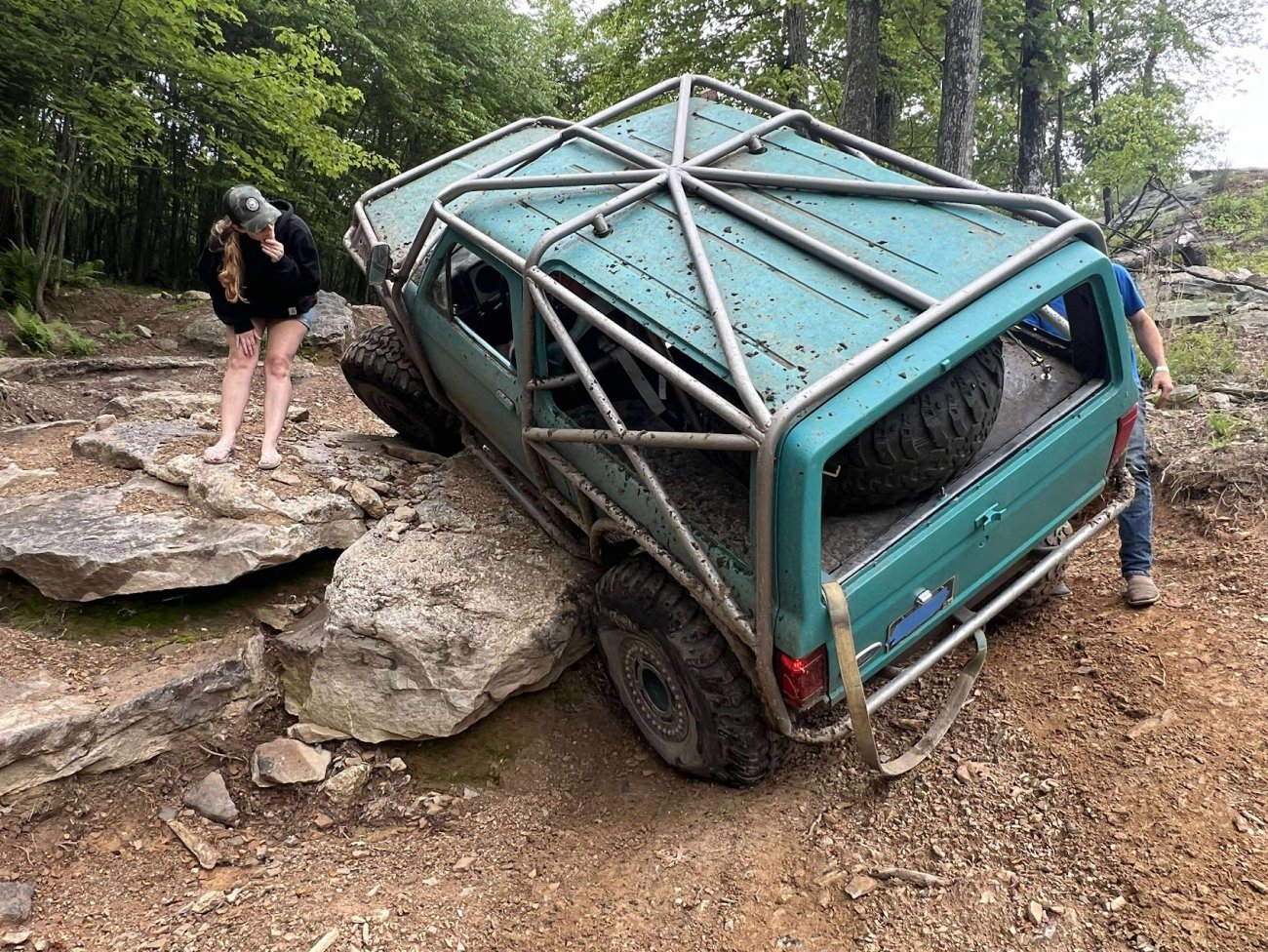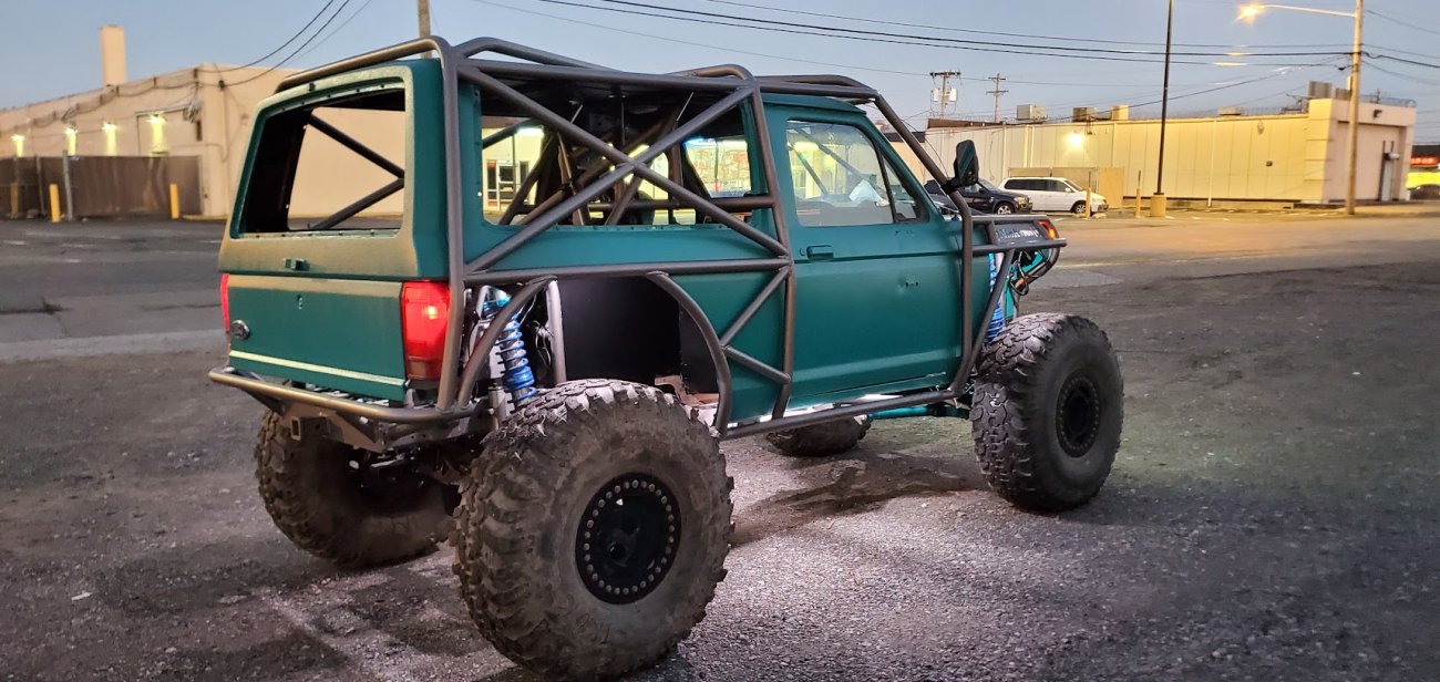The Bronco II still uses the Ford 2.9L V6 that came in the Bronco II and is backed by a C5 automatic transmission that’s been modified with C4 gears and a reverse manual valve body. Behind the transmission is a BW1350/BW1354 transfer case doubler with twin sticks. The gives the Bronco II the crawl ratio it needs to climb rocks.