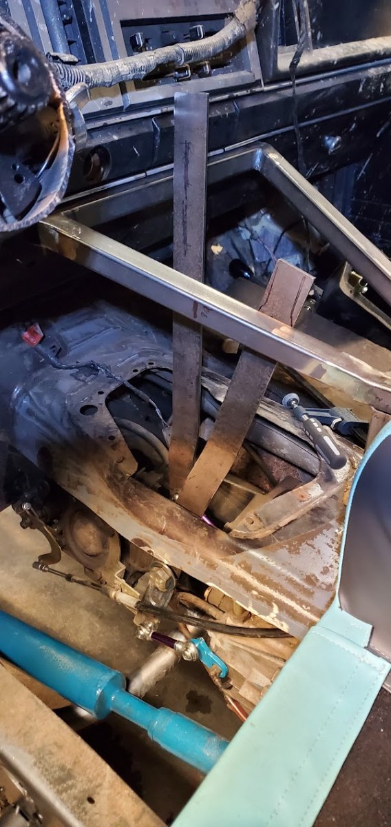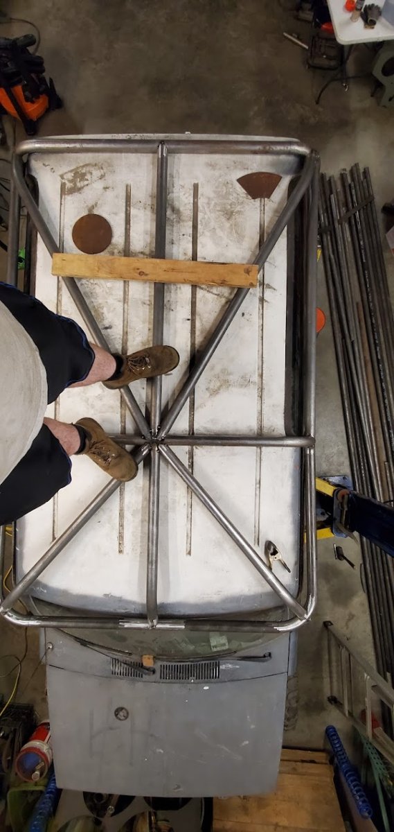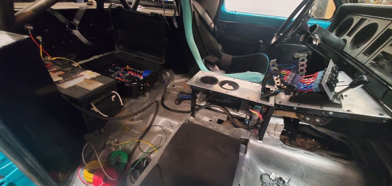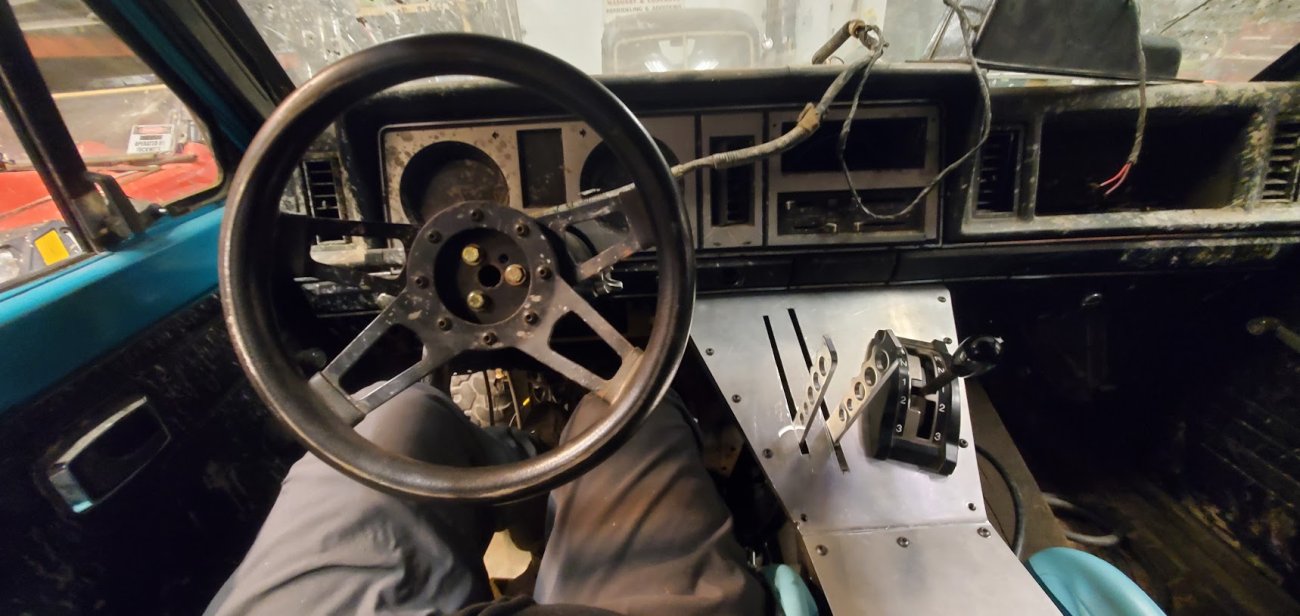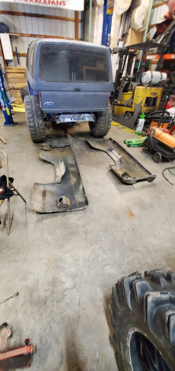 With the rear suspension being stretched 8-inches rearwards, an old Ford Ranger bed was used to make the panels to fill the wide space between the rear tires and the doors.