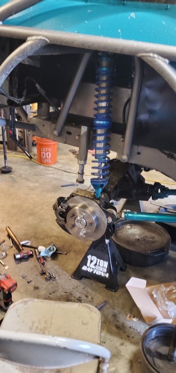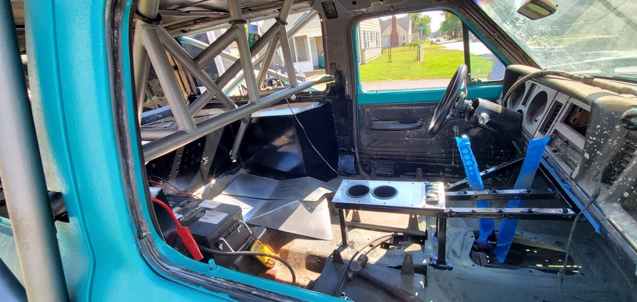 The rear suspension has been replaced with a custom 4-link and King 2.5-inch 14-inch coilovers with Fox bumpstops.
