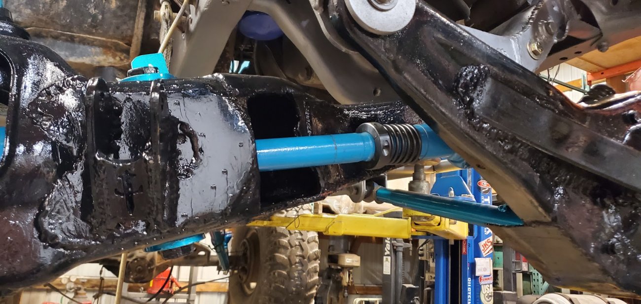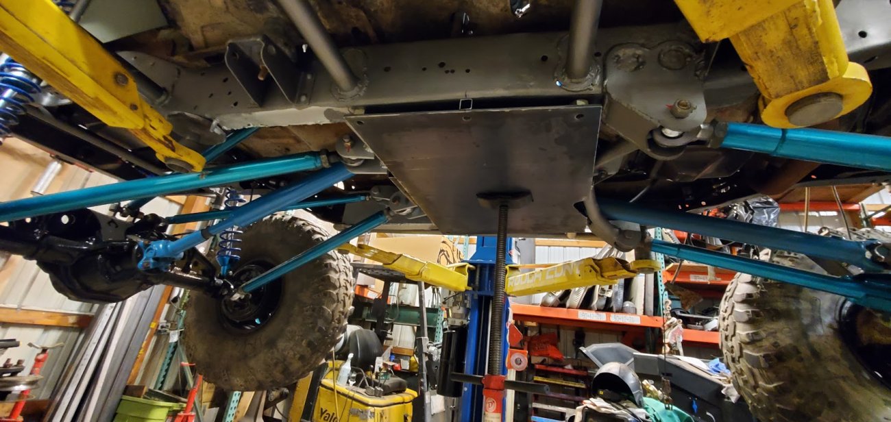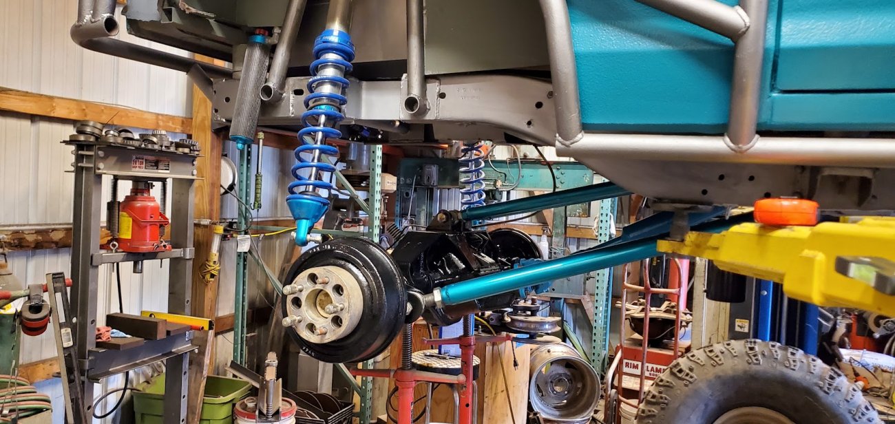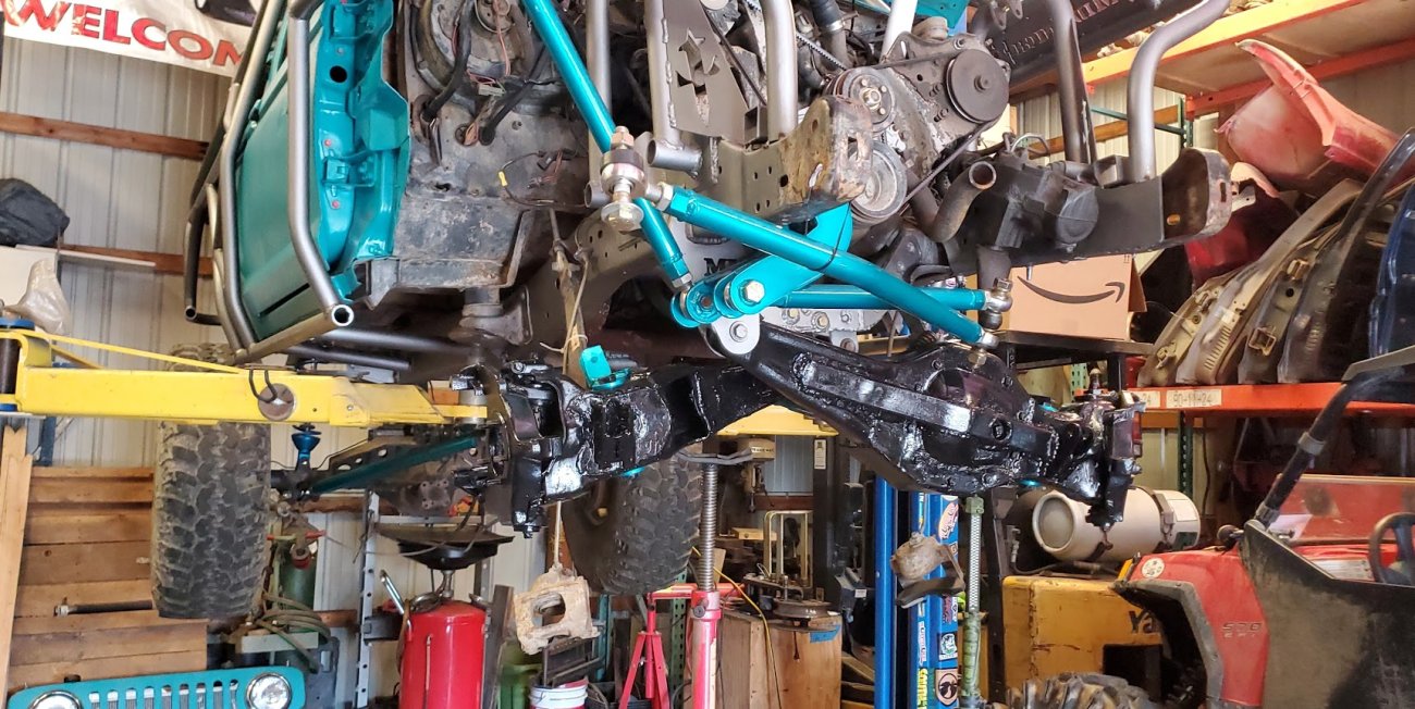 Dugan didn’t just swap the parts from the Ranger onto the Bronco II. He made a lot of upgrades as he went. Below you can see that he designed and built his very own suspension brackets for the front axle