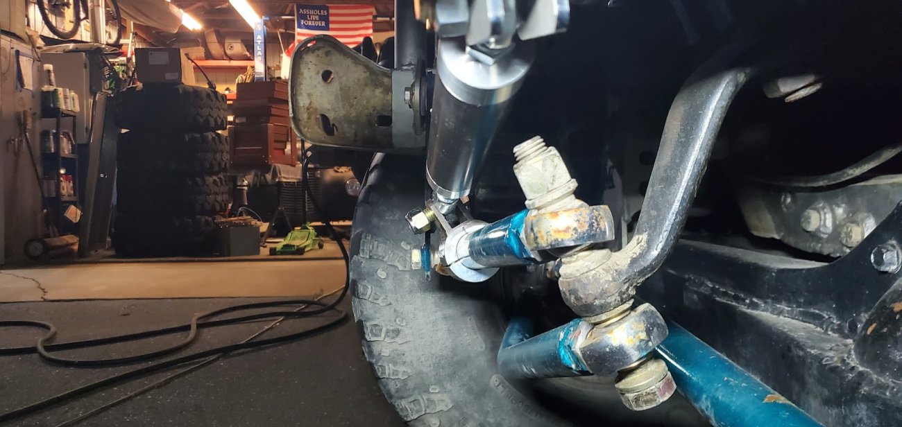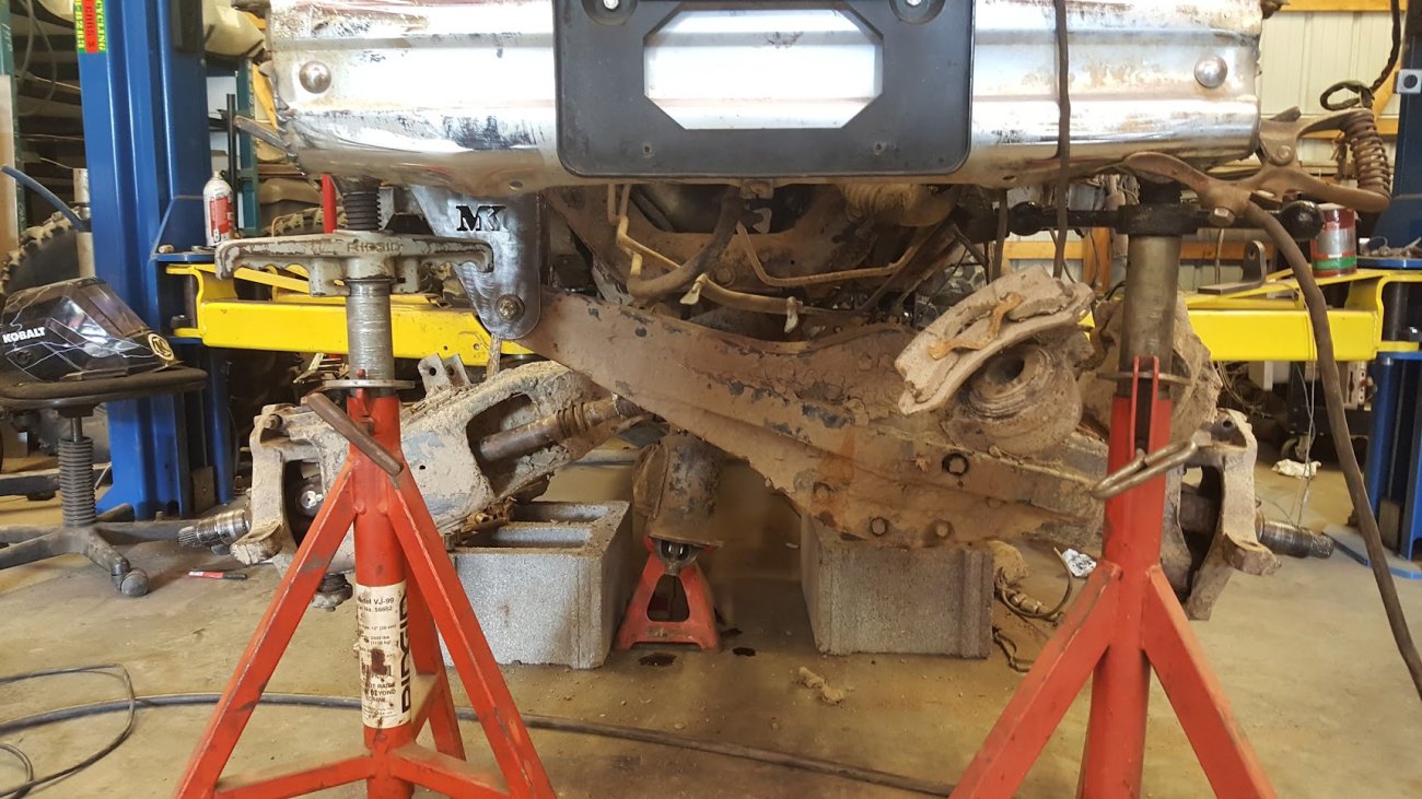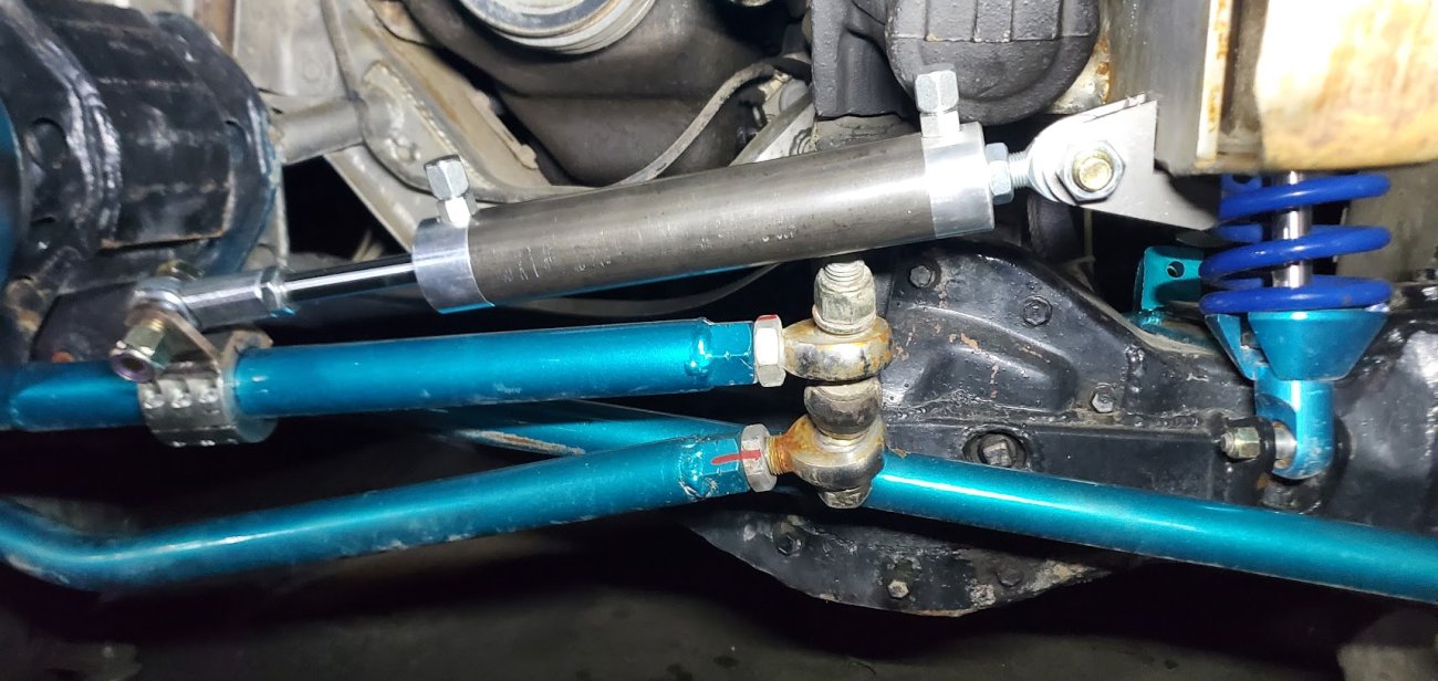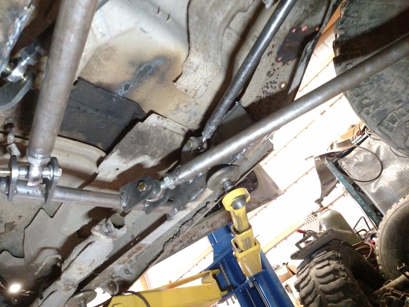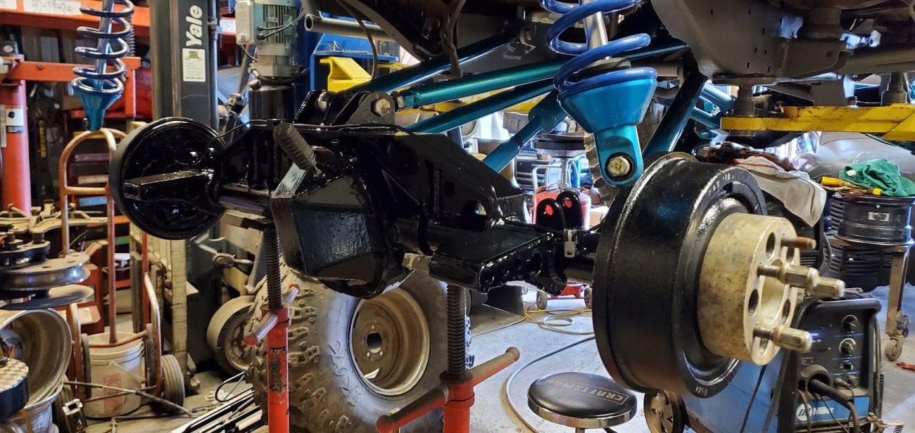 Dana 35 TTB, Trussed, Clearanced for 20″ of travel but limit strapped at 15* camber max., 4.56 Gears, Lockrite Locker, Warn Jeep Hubs, Moog Joints, Stretched 6.5″ forward and each beam is stretched 0.5″ for an additional width of 1″ overall. Ball joints moved out