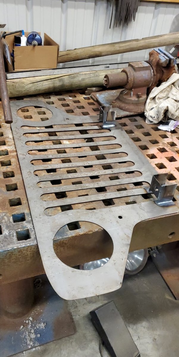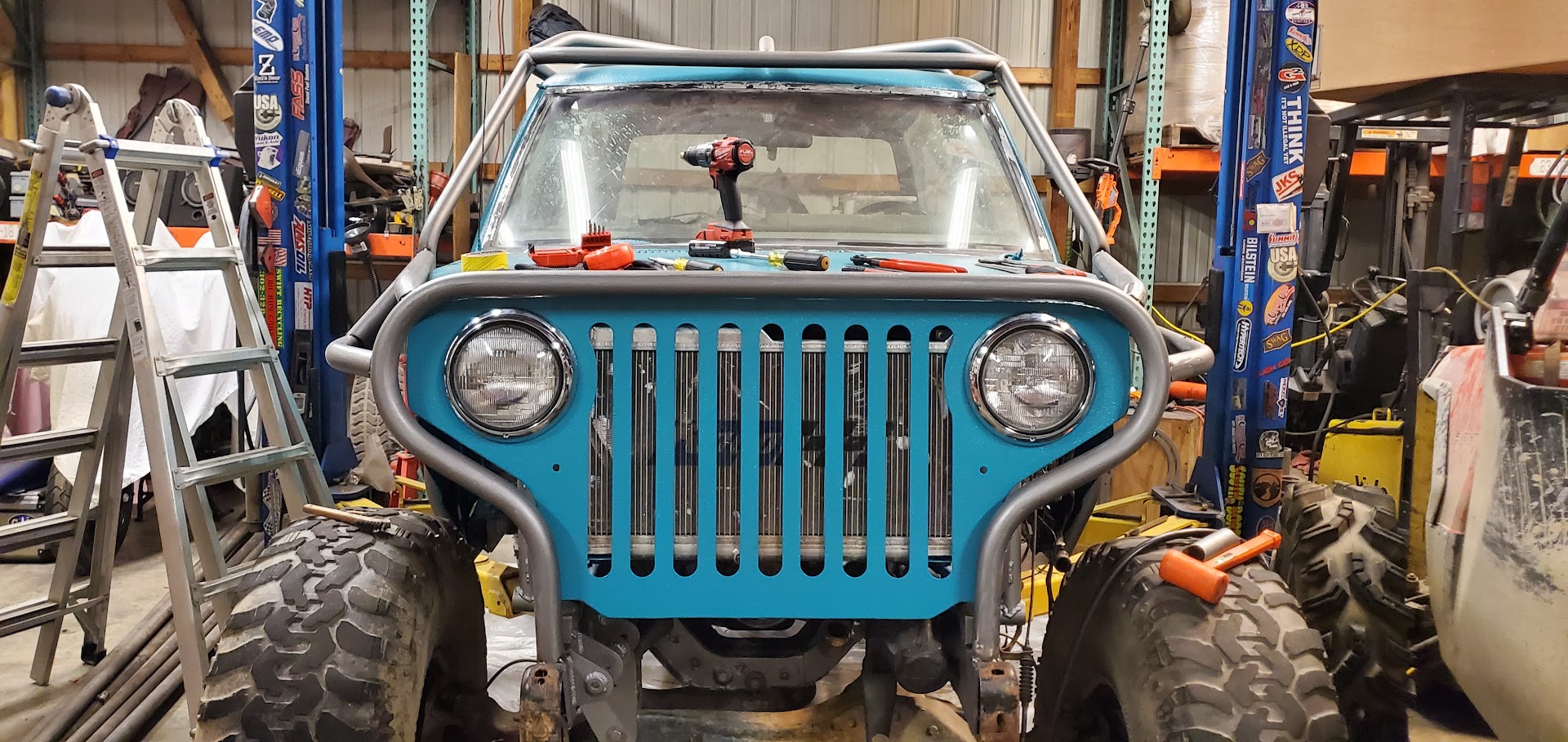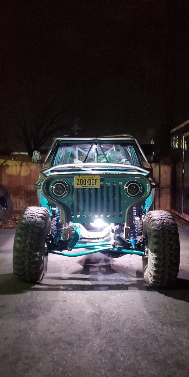 Front custom made CJ3A/CJ2A Grill with 2 slots added to fit the Ford mantra. Front turn signals perform flash back just like the head lights.
