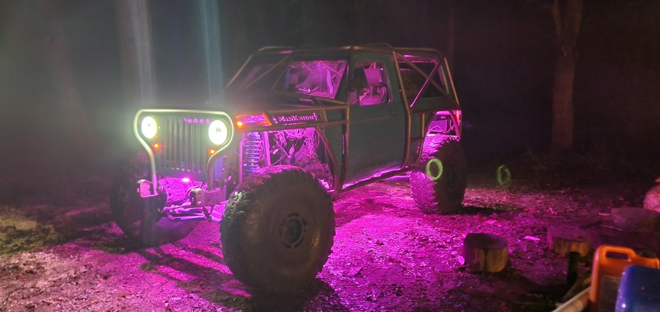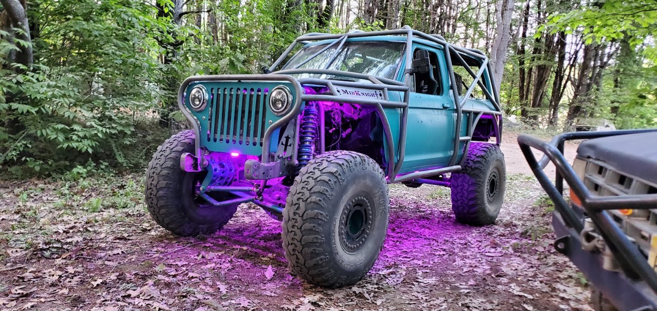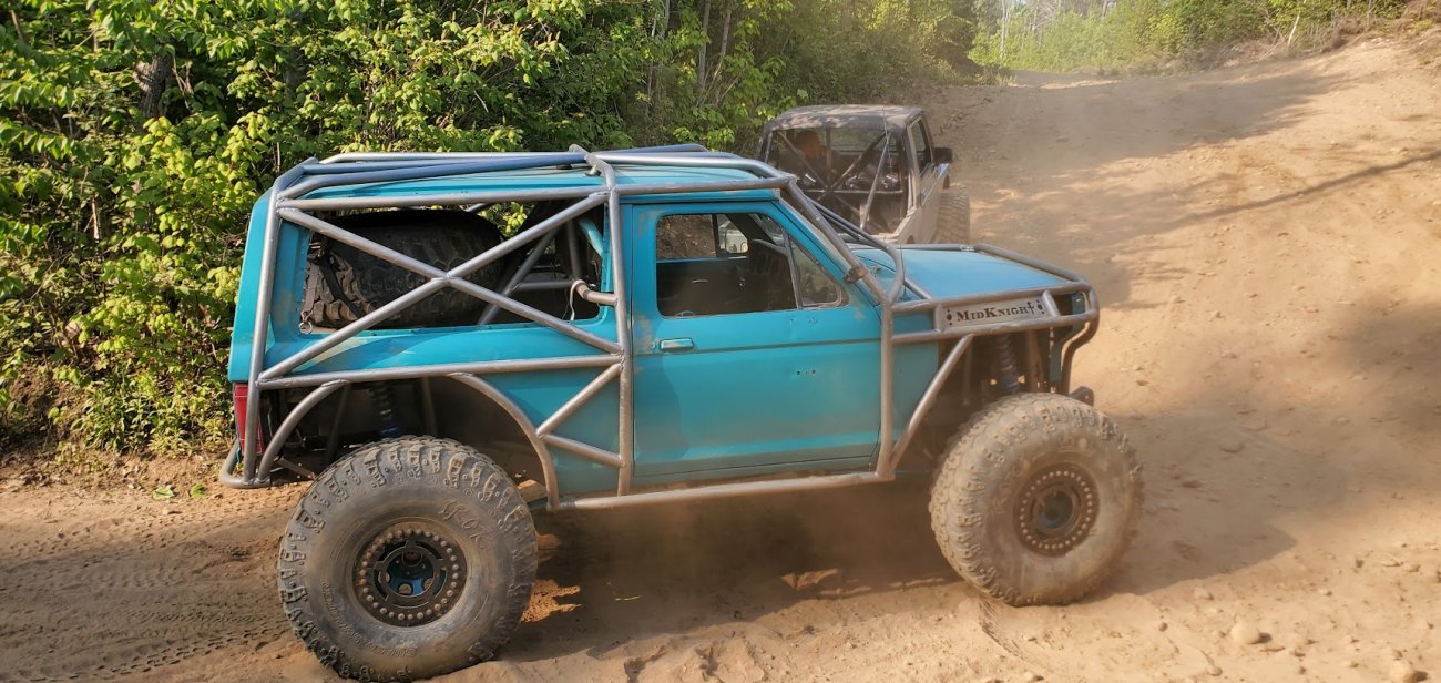 Dugan of MidKnight Fabrications had a modified Ford Ranger, but the body was trashed from a few rollovers and tree encounters. He found an old Bronco II and decided to transfer all of the good parts from the Ranger to the Bronco II.